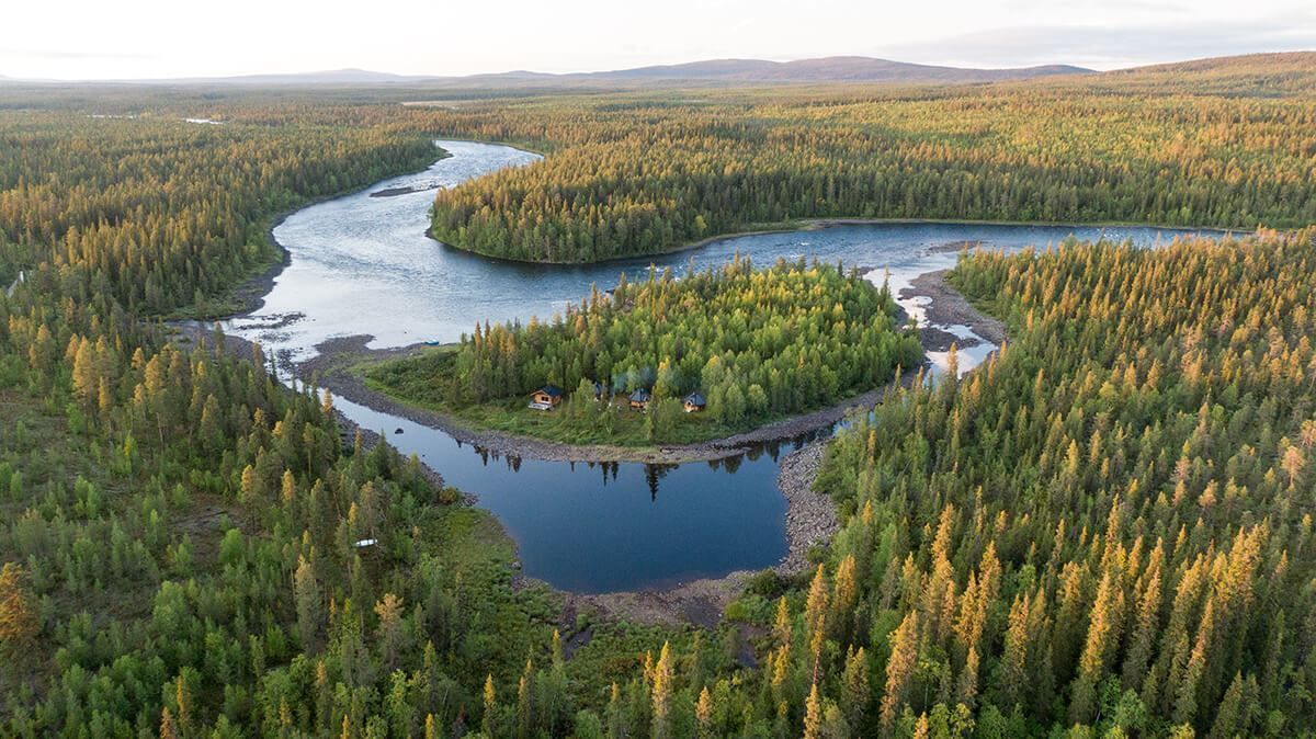 Die Lodge liegt 150 km nördlich des Polarkreises an einem wunderschönen See inmitten eines üppigen Waldes. Der nahe gelegene Fluss Lainio ist die Heimat des Ostseelachses. Das Durchschnittsgewicht der mit der Fliege gefangenen Lachse liegt hier bei 12-15 Pfund...